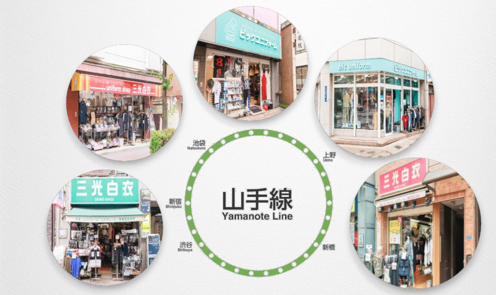 東京都内、山手線沿線に5店舗運営しています。