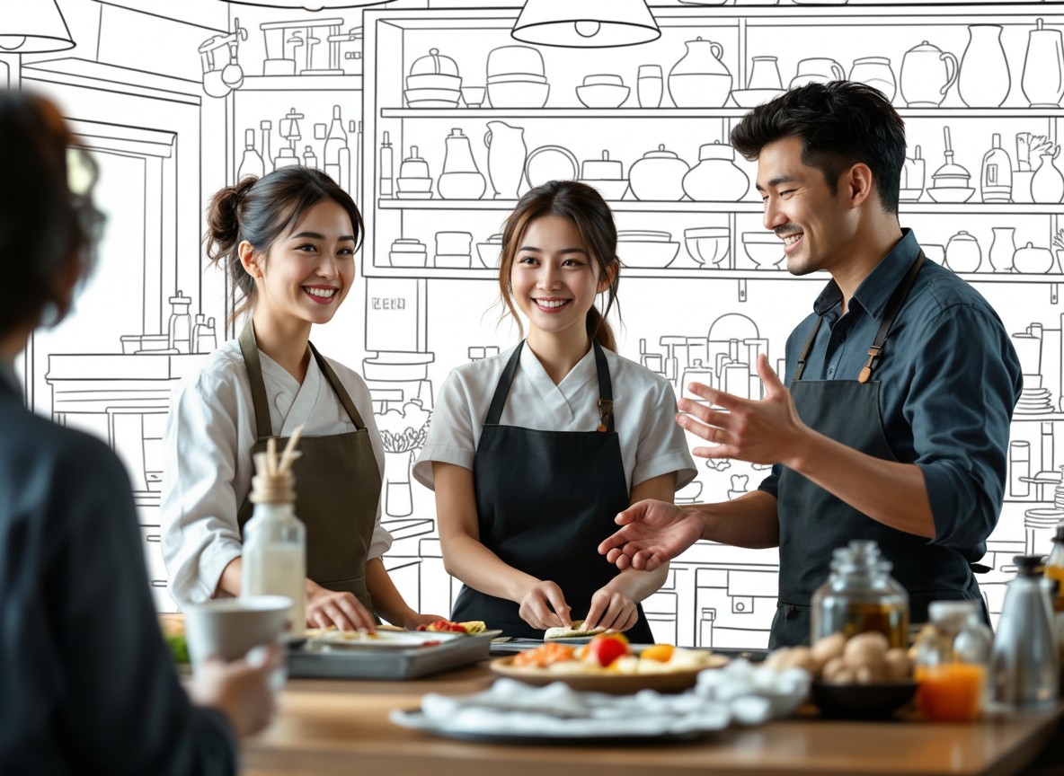 機能性と見た目の清潔感を兼ね備えた厨房用ユニフォーム