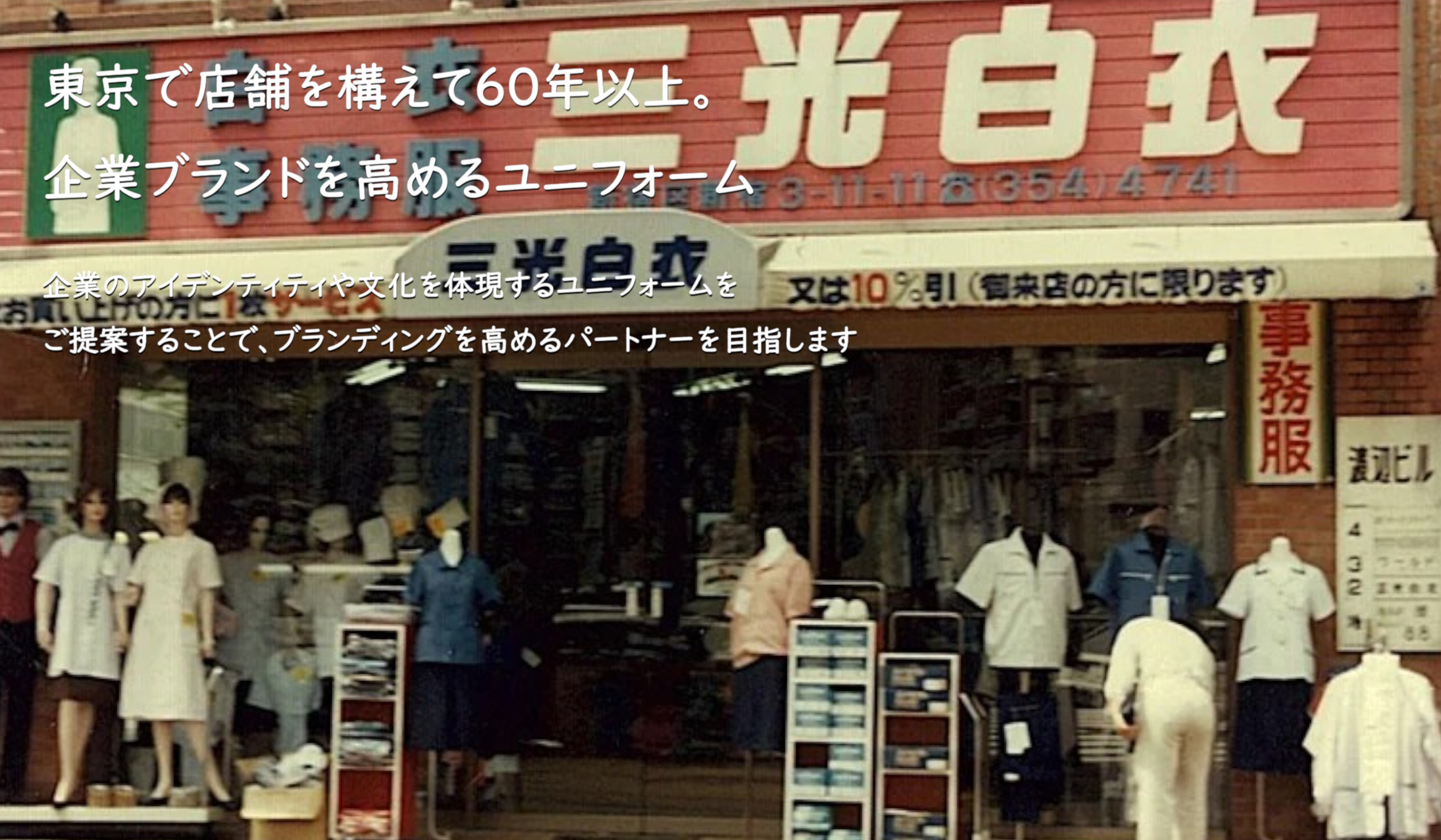 当社は、ユニフォーム全般を取り扱い、首都圏の繁華街を中心に店舗を展開し、60年以上の歴史を歩んでまいりました。